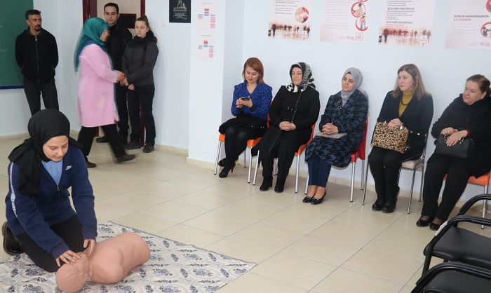 İlkyardım Eğitim Salonu’nda öğrenciler tarafından yapılan sunumun izlenmesinin ardından okul idaresince ayın öğrencisi olarak seçilen öğrenciye ödülü Azime Çiftçi tarafından takdim edildi.