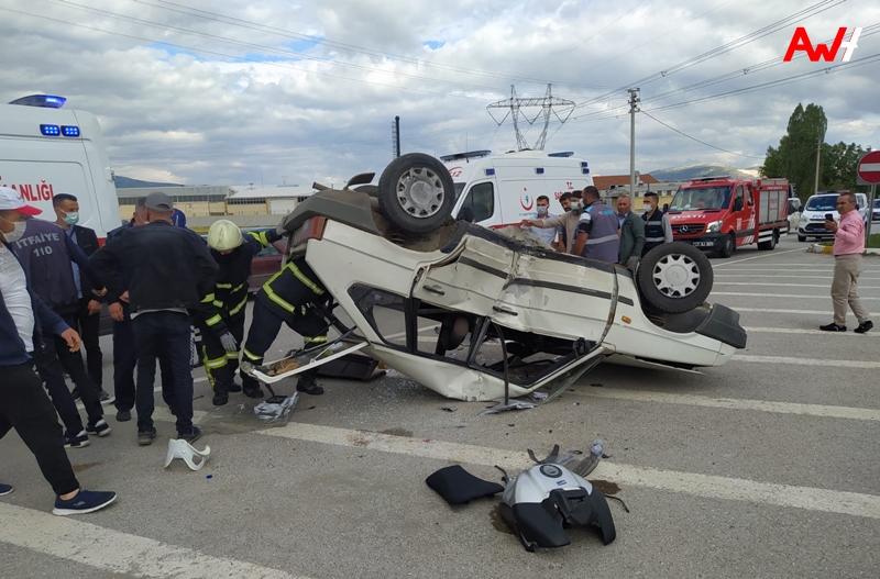 Çarpışmanın şiddeti ile takla atan otomobilin sürücüsü ile motosiklette bulunan Osman Ö, ve Şeyma Ö., yaralandı.