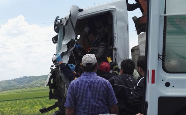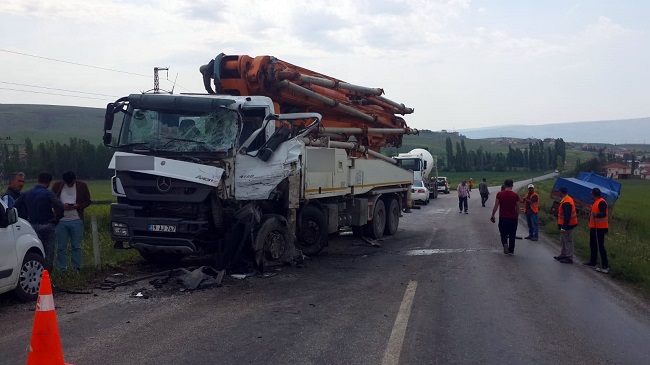 Kaza, Çorum-Ortaköy karayolu 8. kilometresinde meydana geldi. Edinilen bilgilere göre, Ortaköy istikametine seyir halinde olan Seçkin Sevinçoğlu (25) yönetimindeki 19 KK 330 plakalı çimento yükle kamyon ile Altan Erdoğan (40) 19 AJ 767 plakalı beton mikseriyle çarpıştı.