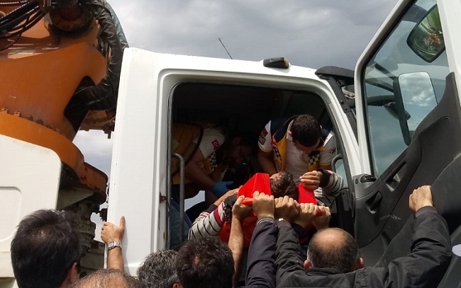 Çarpışmanın etkisiyle her iki sürücü de araçlarda sıkıştı. Diğer sürücülerin haber vermesi üzerine olay yerine trafik ve sağlık ekiplerinin yanı sıra Çorum Belediyesi Kaza Kızım Ekibi sevk edildi.