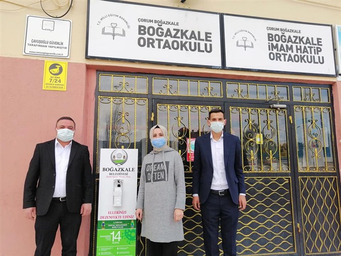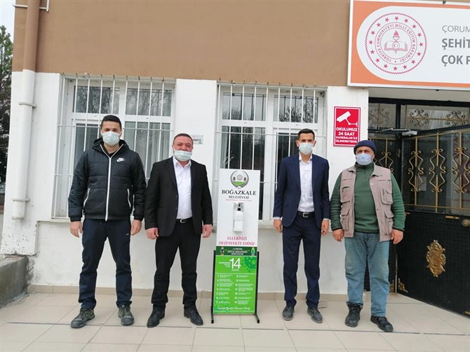 Boğazkale Belediyesi olarak korona virüs salgınına karşı çalışmalarını 7/24 sürdürdüklerini belirten Ocaklı, “Koronavirüsle mücadele kapsamında yaptırmış olduğumuz dezenfektan stantlarını halkımızın ve öğrencilerimizin yoğun olarak kullandığı Cami ve Okullarımıza teslim ettik. Hepinize sağlıklı bir yaşam diliyorum” şeklinde konuştu.