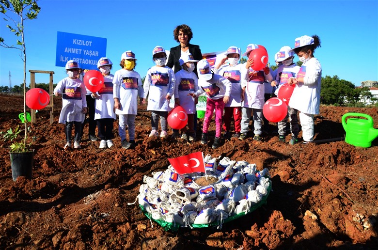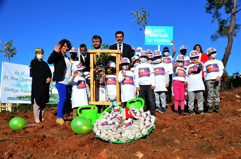 Mustafa Kemal İlkokulu öğrencileri ve öğretmeni Diyarhan Murat Yılmaz ve İl Koordinatörü Yelda Kuşcu Kılıçarslan ile 81 il 81 Avuç Toprak ile Türkiye fidanı projesinde birlikte yer aldı.