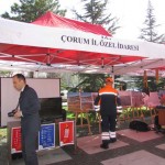 Çorum Valiliği önüne kurulan depremlerde kullanılan arama kurtarma araçları ile malzemelerin tanıtım stantları ve çadırlarının açılış töreni yapıldı. Bir hafta sürecek deprem haftasının programının açılış konuşmasını yapan Çorum Valisi Ahmet Kara, deprem haftasının Türkiye’de depremsiz ve depreme dayanıklı konutlar üretecek günlere vesile olacak bir hafta olmasını temenni ederek konuşmasına başladı.