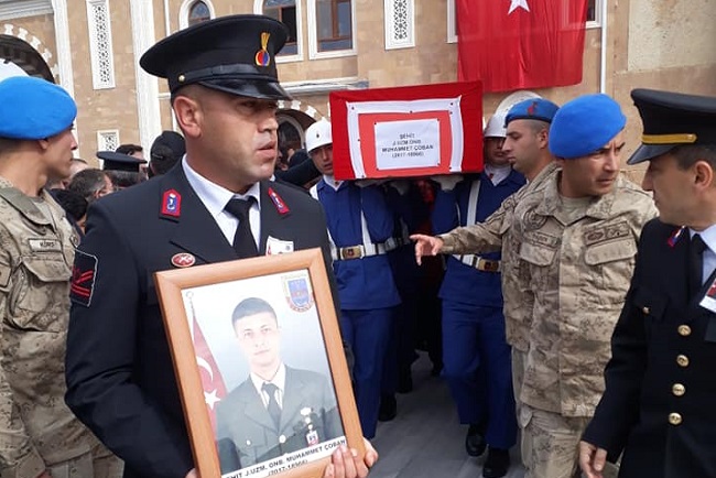 Mardin’de güvenlik güçleriyle bir grup PKK’lı terörist arasında çıkan çatışmada şehit olan jandarma uzman onbaşı, memleketinde son yolculuğuna uğurlandı.