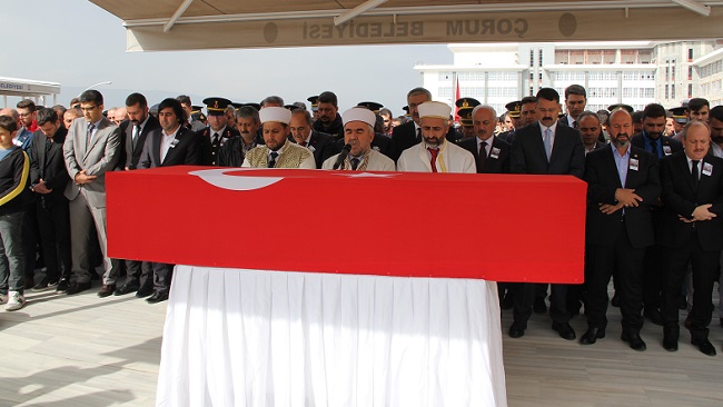 Jandarma Uzman Onbaşı Muhammed Çoban için düzenlenen törene silah arkadaşları da katıldı. Türk bayrağına sarılı tabutuna ve cenaze aracına sarılan silah arkadaşları gözyaşlarına boğuldu. Bunun üzerine şehit eşi “Eğmeyin boynunuzu dik durun” ifadesini kullandı. Cenazeye Milli Savunma Bakan Yardımcısı Şuay Alpay, Çorum Valisi Necmettin Kılıç, Kırıkkale Valisi Mehmet İlker Haktan, Çorum milletvekilleri Erol Kavuncu, Tufan Köse, Belediye Başkanı Zeki Gül, Kırıkkale Belediye Başkanı Mehmet Saygılı, siyasi partilerin temsilcileri ve binlerce vatandaş katıldı. (İHA)