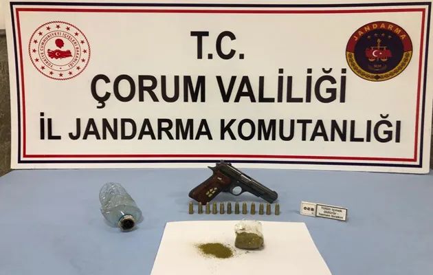 Çorum’da bir araçta yapılan aramada uyuşturucu madde ve ruhsatsız silah ele geçirilirken, bir kişi tutuklandı.