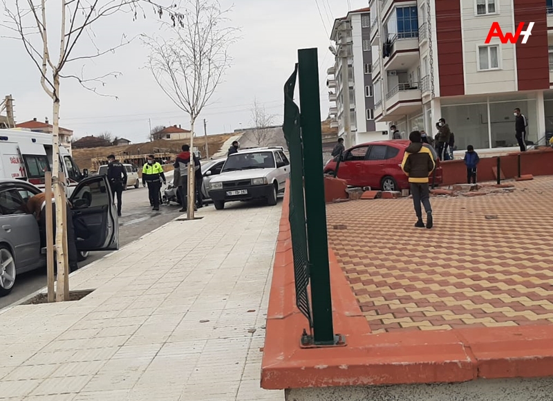 Kazada otomobillerden biri kontrolden çıkarak apartmanın bahçesine girdi.