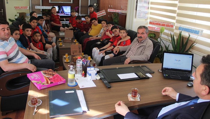 Oğuzlar Belediyespor U12 takımı oyuncuları Oğuzlar Belediye Başkanı Muzaffer Yıldırım’a hayırlı olsun ziyaretinde bulundu.