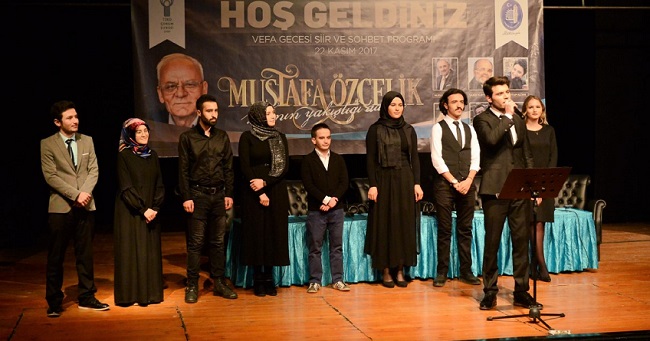Yunus Emre ve Mevlana hoşgörüsünü günümüz Türk Edebiyatına yansıtan Mustafa Özçelik’in adına düzenlenen geceye Nurullah Genç, Şakir Kurtulmuş, Mehtap Altan ve Ezgi Fatma Açıkgöz gibi günümüz edebiyatımızın önemli isimleri katıldılar.