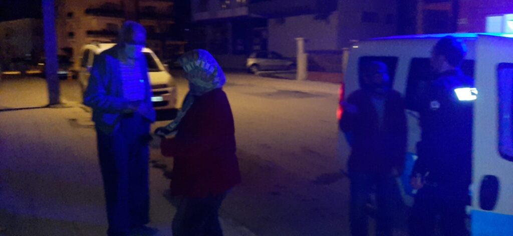 Ekipler tarafından ikametine getirilen yaşlı kadını evin önünde komşuları karşıladı.