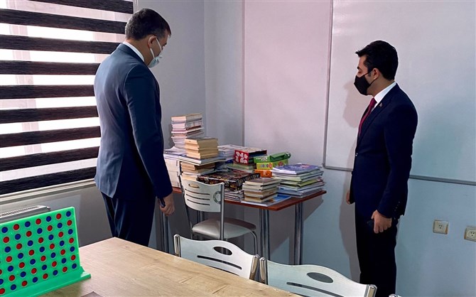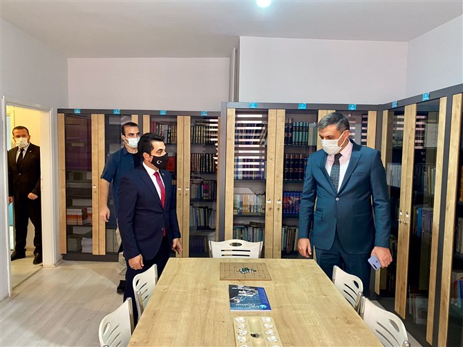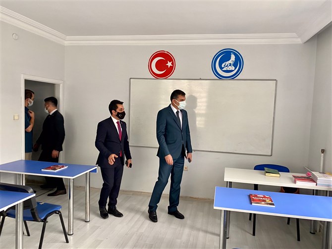 Vali Çiftçi’ye Ülkü Ocakları Eğitim ve Kültür Vakfı hizmet binasını gezdiren Tosik, odaların hangi amaçla kullanıldığına dair bilgiler verdi.