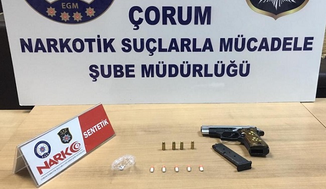 Çorum’da narkotik polislerinin sokak satıcılarına yönelik düzenlediği operasyonda 254 adet uyuşturucu hap, 2 gram esrar ile 1 adet ruhsatsız tabanca ele geçirildi.