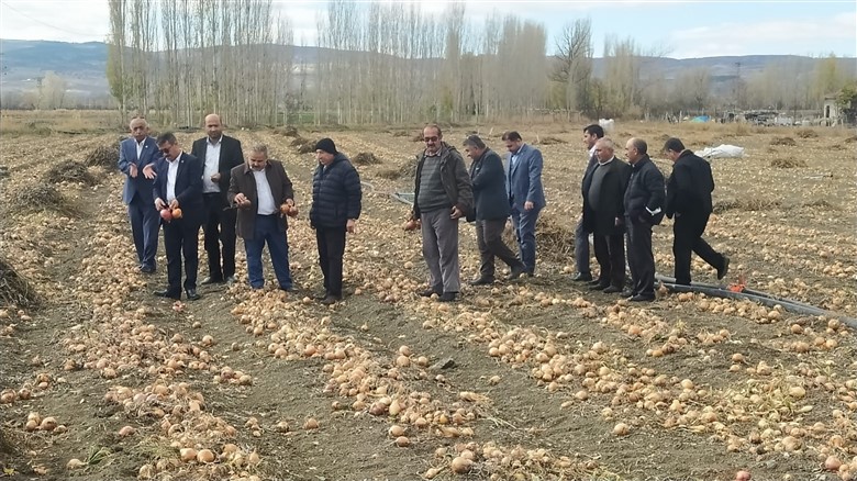 Yapılan Çorum Ziraat Odaları İl Koordinasyon Kurulu Toplantısından sonra hep birlikte yakın köyde soğan üretimi yapan çiftçiyi ziyaret ederek, burada sorunlarla ilgili açıklama yaptılar.